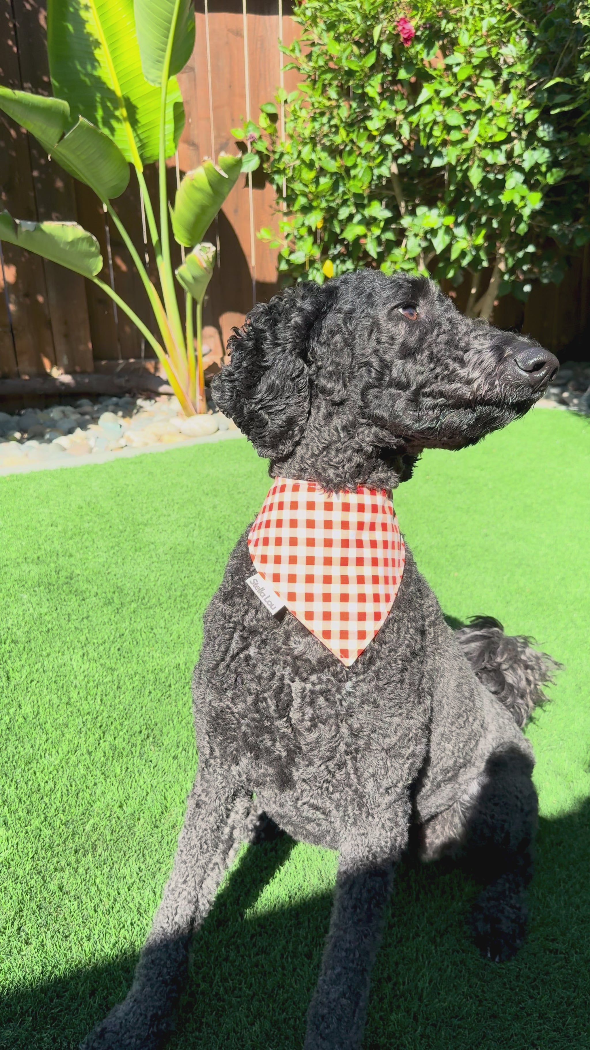 Classic charm meets tail-wagging style! The Check Me Out bandana features timeless gingham in a lightweight cotton breathable fabric that’s perfect for picnics, playdates, and photo ops. Whether your pup is strutting through the park or lounging on the porch, this bandana adds just the right touch of vintage cool.