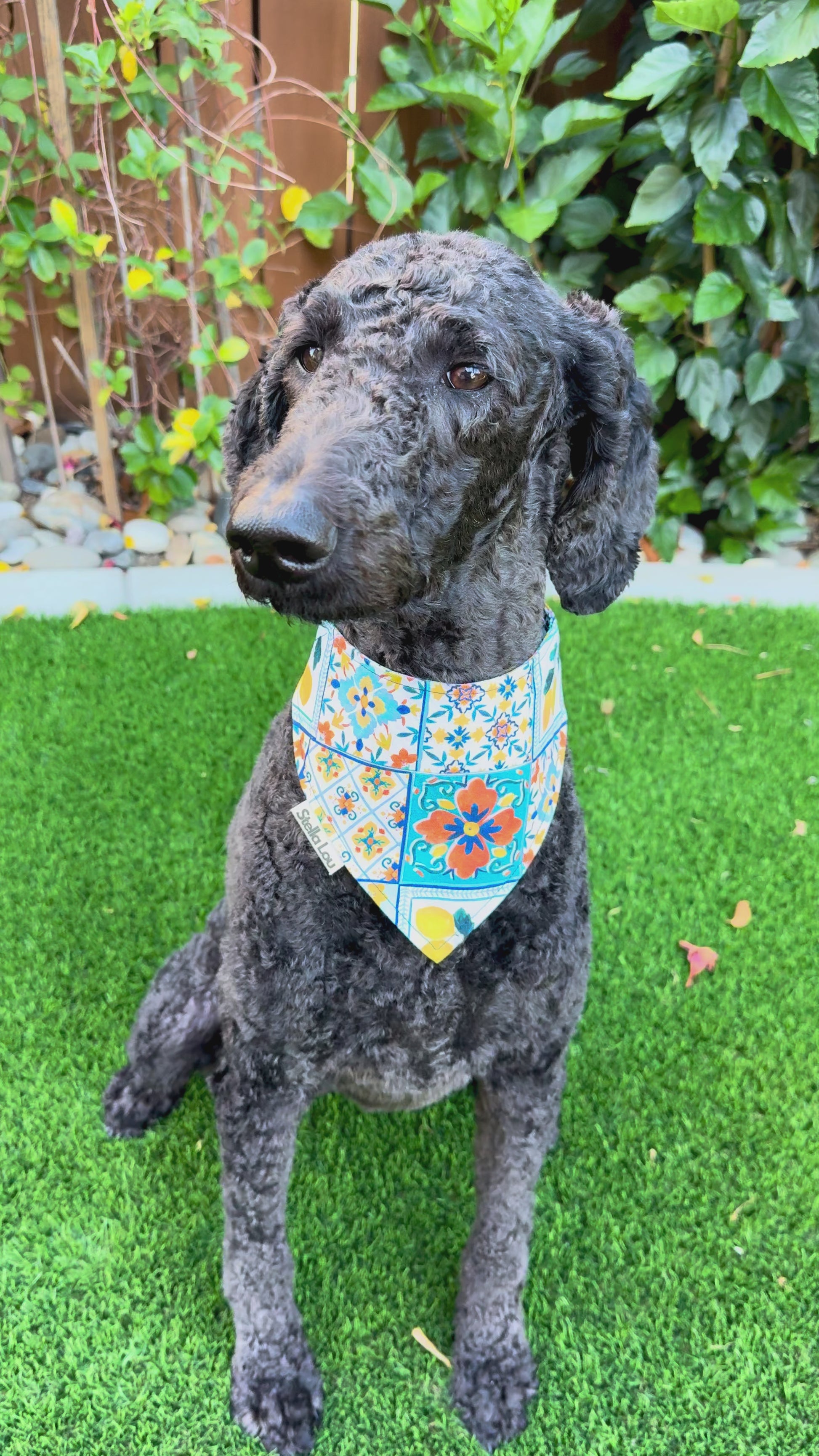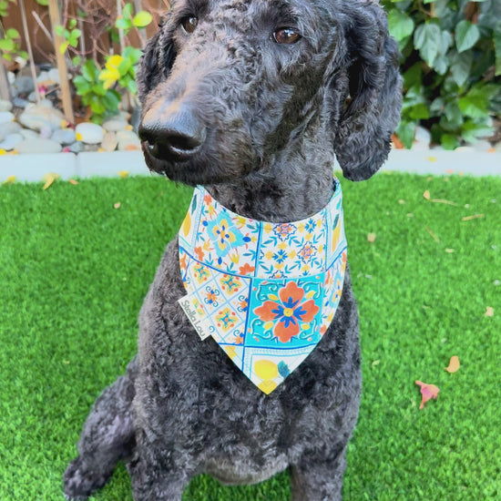 Let your pup live la dolce vita with The Italian Dream Bandana. Crafted from soft, breathable cotton, this stylish accessory features a charming design inspired by the colors and romance of Italy—perfect for strolls through the park or lounging in the sun. Easy snap-button closures make it a breeze to put on and take off, with no fuss or knots.